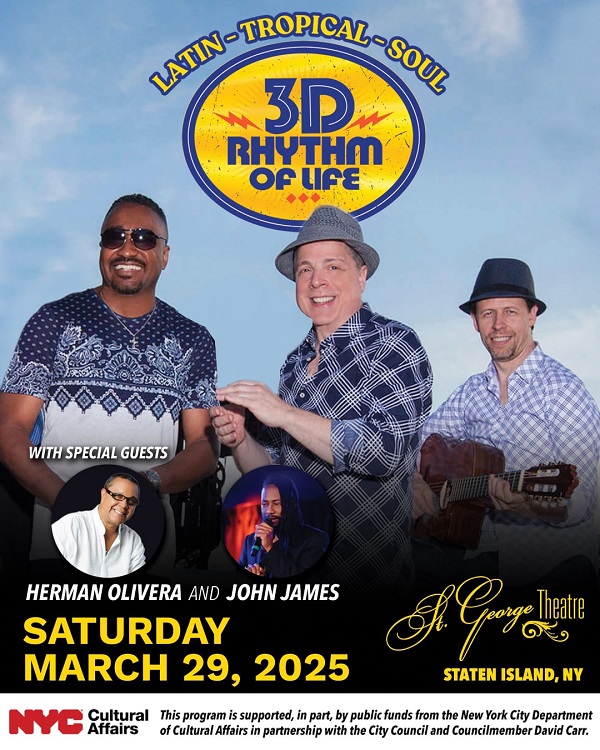 Home » 3D Rhythm of Life in concert at St. George Theater3D Rhythm of Life in concert at St. George Theaterby Latinos UnidosFebruary 26, 2025February 26, 2025 Purchase tickets here! 3D Rhythm of Life Follow on FACEBOOK https://www.facebook.com/3D-Rhythm-of-Life-121966454547935/INSTAGRAM https://www.instagram.com/slambass/TWITTER https://twitter.com/3drdvWEBSITE http://www.hear3dmusic.com/index.html Leave a Reply Cancel replyYour email address will not be published. Required fields are marked *Name * Email * Website Comment * Save my name, email, and website in this browser for the next time I comment.