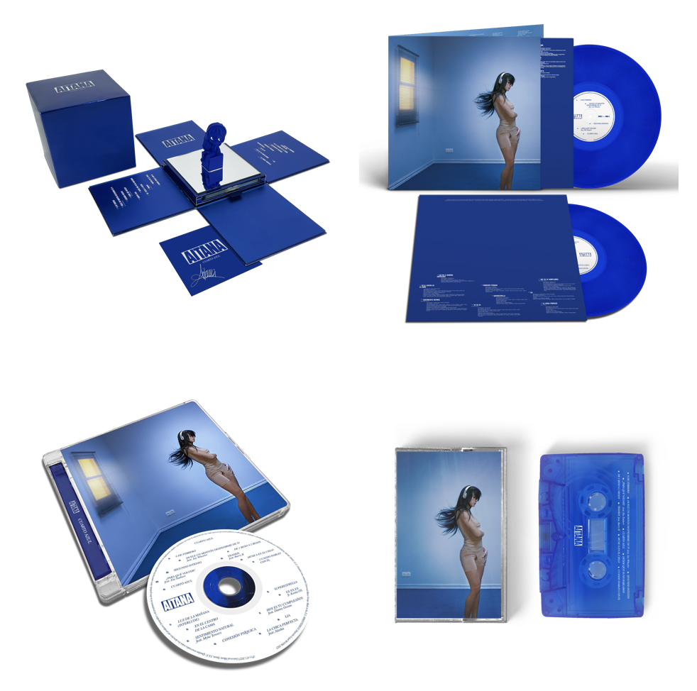 ‘CUARTO AZUL’está disponible en cuatro formatos físicos: una caja edición limitada con una figura de AITANA, un vinilo color azul, un CD y un casete color azul.