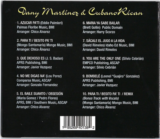 Dany Martinez & Cubano-Rican “Vol. 2 – Para Ti”, una mezcla de ritmos cubanos con el respaldo charanguero al estilo de los 70’s/80’s en Nueva York que creo que encajaría bien en sus mezclas y fiestas. Bajo la direccion del flautista cubano/puertorriqueño Dany Martinez y las voces del legendario cantante Chico Alvarez y Jose Calderon, reunidos a un grupo de musicos excelentes y grandes invitados para una fiesta casera que se desborda hacia la pista de baile.