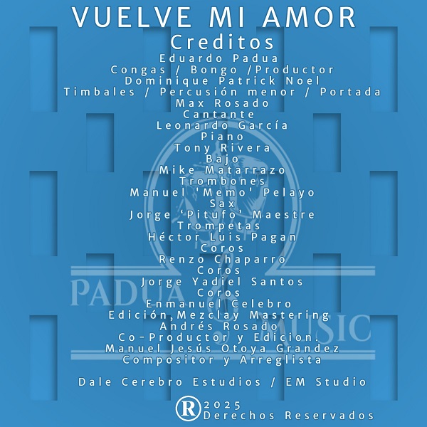 Home » Eduardo Padua – Vuelve Mi AmorEduardo Padua – Vuelve Mi Amorby Latinos UnidosAugust 29, 2025August 29, 2025 Disponible en tu discotienda favorita! Lo nuevo de Eduardo Padua! Follow on #eduardopadua #salsa #maxrosado https://www.facebook.com/eduardo.padua.927 Leave a Reply Cancel replyYour email address will not be published. Required fields are marked *Name * Email * Website Comment * Save my name, email, and website in this browser for the next time I comment.