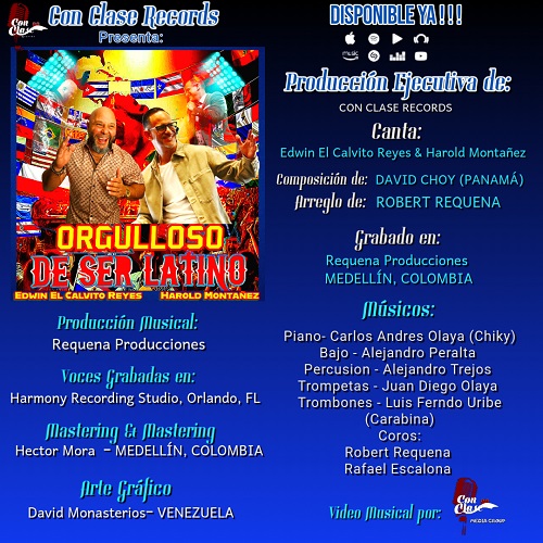 Con Clase Media Group, y Elenco Management, nos traen al Cantautor Puertorriqueño, Edwin “El Calvito” Reyes, junto al inigualable, Cantante puertorriqueño, Harold Montañez (Hijo de la Leyenda, Andy Montañez), y el tema ORGULLOSO DE SER LATINO.