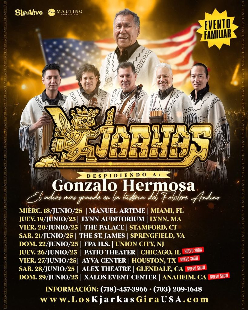 Con más de cincuenta años de trayectoria musical, el emblemático grupo folklórico boliviano Los Kjarkas llega a Estados Unidos para una histórica gira de despedida. La gira especial «Despidiendo a Gonzalo Hermosa» será una celebración de despedida a su miembro fundador, Gonzalo Hermosa, quien se despide oficialmente de la icónica banda. La gira por nueve ciudades, producida por Mautino Productions y SLenVivo, llevará al grupo a Miami, Chicago y Houston, entre otras ciudades.