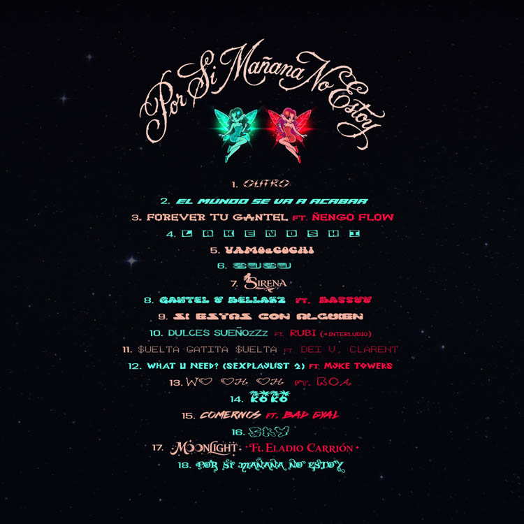Donde Por Si Mañana No Estoy realmente demuestra su fuerza es en su capacidad de equilibrar intensidad con intención. Temas de reggaetón como “FOREVER TU GANTEL” junto a Ñengo Flow, “$UELTA GATITA $UELTA” y “SUSU” canalizan la energía de la pista de baile en su forma más cruda e hipnótica: sudorosa, provocadora y plenamente viva, sin caer nunca en la repetición. Estos cortes funcionan como el latido del álbum, anclando su exploración sonora en el movimiento y el ritmo.