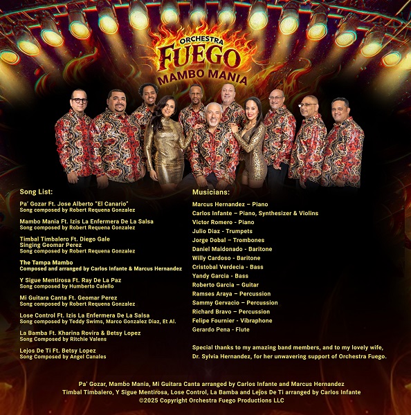 “Mambo Mania” ya está disponible a través de: https://orchestrafuego.com/new-album-mambo-mania