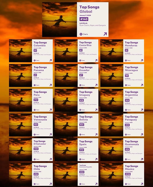 El tema se ha convertido en una fuerza viral en TikTok, generando más de 1 millón de creaciones de usuarios utilizando el audio de “La Villa”. Su impacto global continúa en ascenso tras ingresar al Global Chart de Spotify, alcanzar el #1 en Spotify Colombia, Costa Rica, Honduras, y Panama, y #1 en Apple Music Colombia, mientras se posiciona en el Top 10 y Top 20 en territorios clave de Latinoamérica y España incluyendo Ecuador (#6), Nicaragua (#8), Peru (#12), Argentina (#22), Bolivia (#24), El Salvador (#26), Venezuela (#21), España (#32), y Guatemala (#35), entre otros.